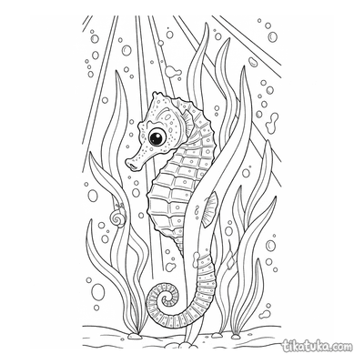 Esta colección cuenta con 160 láminas dedicadas a los animales submarinos. Los caballitos de mar aparecen en múltiples escenas —dirigiendo una orquesta de arrecife, girando alrededor de ramas de coral o nadando entre algas— mientras que los ajolotes manchados y los tiburones ballena aportan variedad a la galería. Cada dibujo tiene trazos bien definidos que se adaptan a distintas edades y niveles de habilidad, desde los más pequeños hasta niños con más experiencia.