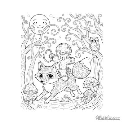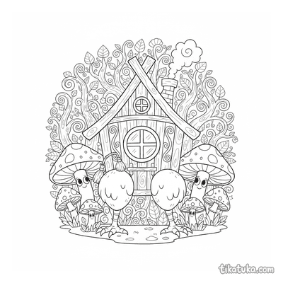 La sección de cuentos de hadas reúne 179 láminas que abarcan tanto los clásicos del folclore europeo —Caperucita, Los tres cerditos, La Bella Durmiente, Hansel— como personajes del universo fantástico: elfos minúsculos en setas gigantes, potros de unicornio en praderas, duendes asomándose desde troncos huecos. Las escenas están dibujadas con líneas claras que distinguen bien los personajes del fondo, lo que las hace adecuadas tanto para niños pequeños como para quienes disfrutan de un trabajo más detallado.