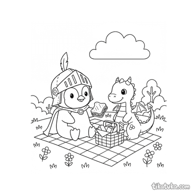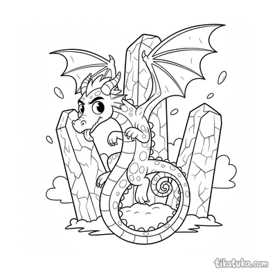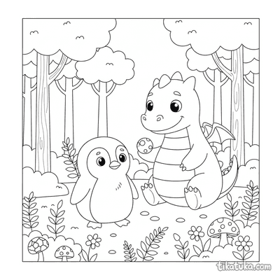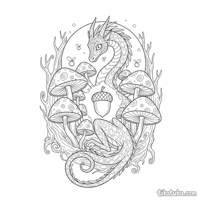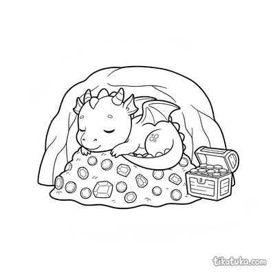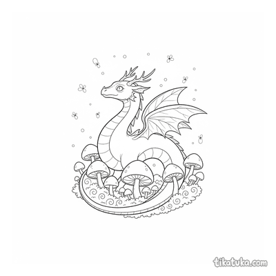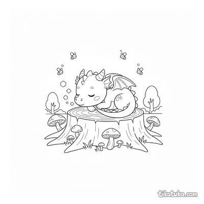 Una amplia colección de páginas para colorear dedicadas a dragones y criaturas míticas de todo tipo: desde pequeños dragones bebé dormidos sobre cofres y gemas hasta imponentes guardianes del bosque custodiando anillos de hongos. Entre las escenas también aparecen hadas, caballeros y compañeros fantásticos que convierten cada lámina en una pequeña historia para imaginar.