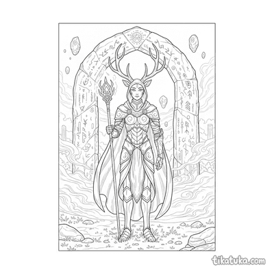 Esta sección reúne 147 láminas de fantasía protagonizadas por personajes y escenarios de mundos imaginarios. Los protagonistas abarcan desde duendes guardianes de colecciones de llaves hasta cachorros de zorro de cristal jugando en cuevas de geoda; desde gólems de roca que sostienen nidos de pájaros hasta aprendices que mezclan pociones en torres desordenadas. Las escenas narran historias completas: islas flotantes con bibliotecas y cuidadores voladores, hadas sorprendidas por una nevada inesperada, o magos que practican levitación entre estanterías repletas de libros. El nivel de detalle de cada composición invita a los niños a explorar el escenario con calma mientras trabajan en él.