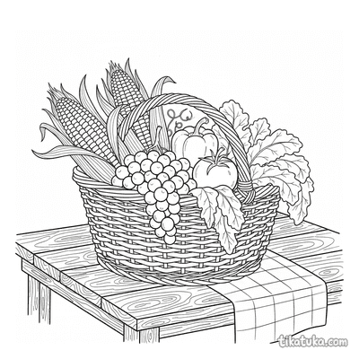 Esta colección reúne 152 dibujos de frutas y verduras con una gran variedad de escenas y personajes: un calabacín gigante junto a un pequeño jardinero, setas esparcidas por el suelo del bosque, brócoli y coliflor bailando en el huerto, o una cesta desbordada del mercado otoñal. Cada escena está trazada con contornos definidos y espacios abiertos, pensados para que los niños puedan trabajar con soltura.