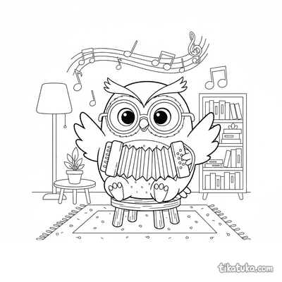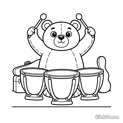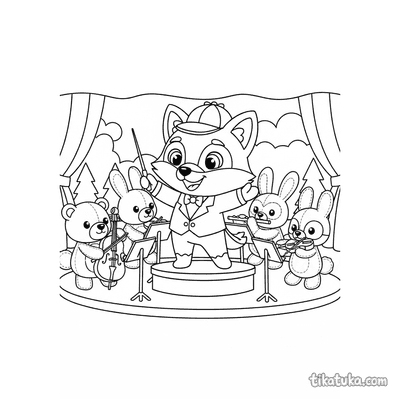 Esta sección reúne 151 dibujos de temática musical pensados para niños de distintas edades. Las composiciones combinan personajes animales con instrumentos clásicos —violín, violonchelo, acordeón, batería, guitarra— y escenas cotidianas como una lección de piano o un festival de verano. Algunas hojas muestran conjuntos completos y coros; otras enfocan a un único músico en acción, lo que permite elegir según el nivel de detalle que el niño prefiera.