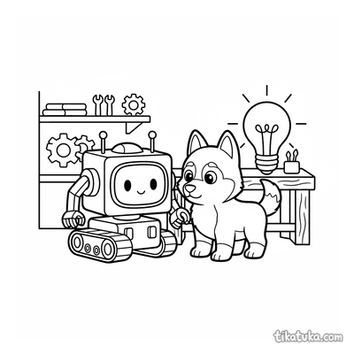 La sección reúne 152 páginas con escenas originales protagonizadas por robots de lo más variado. Aparecen repartidores en monoruedas, exploradores que trabajan en la Luna, una libélula mecánica posada en un engranaje oxidado, robots modulares que se ensamblan a sí mismos y personajes entrañables como el Husky Lutik junto a su amigo robot de juguete. Cada página presenta una situación distinta, lo que mantiene el interés de niños de diferentes edades.