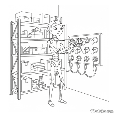 En esta sección encontrarás robots de todo tipo: desde repartidores que surcan el espacio en platillos voladores hasta jardineros interestelares que cuidan plantas de cristal. Hay robots submarinos que reparan engranajes, caballeros mecánicos que pulen sus escudos, mineros de asteroides y pequeños ayudantes que construyen torres de cartas. Una colección pensada para niños curiosos que disfrutan del mundo de las máquinas y la tecnología.