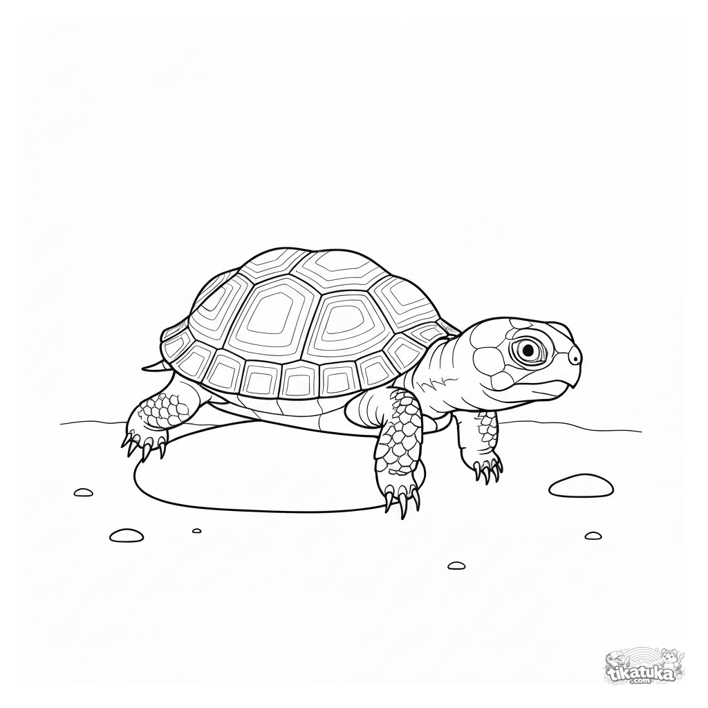 Página para colorear infantil: una tortuguita sube por una piedra. Líneas claras y pocos detalles para niños de 3-5 años que empiezan a colorear.