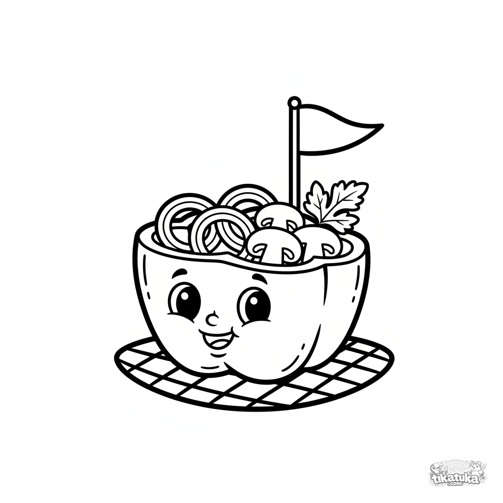 Una página para colorear de Comida con detalle Fácil. Es adecuada para edades 2-3 años, se imprime bien en casa y se abre enseguida en modo en línea.