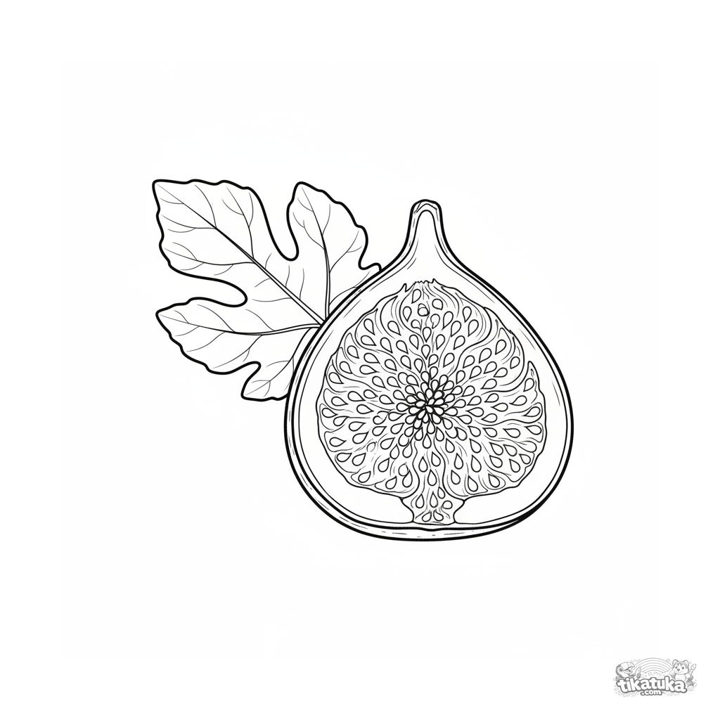 Página botánica detallada para colorear del corte de un higo. Para niños de 10-12 años. Estilo realista de guía de campo, educativo.