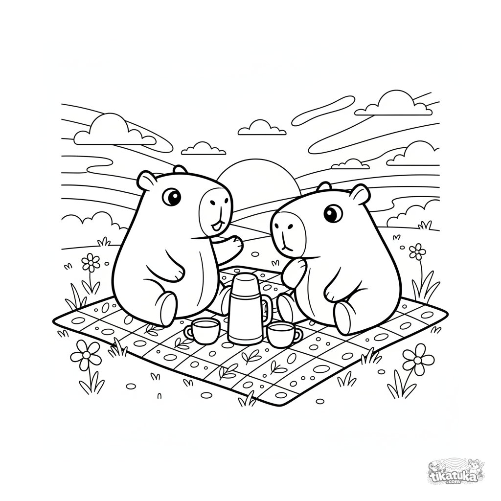 Una página para colorear de Capibaras y relax con detalle Medio. Es adecuada para edades 4-6 años, se imprime bien en casa y se abre enseguida en modo en línea.