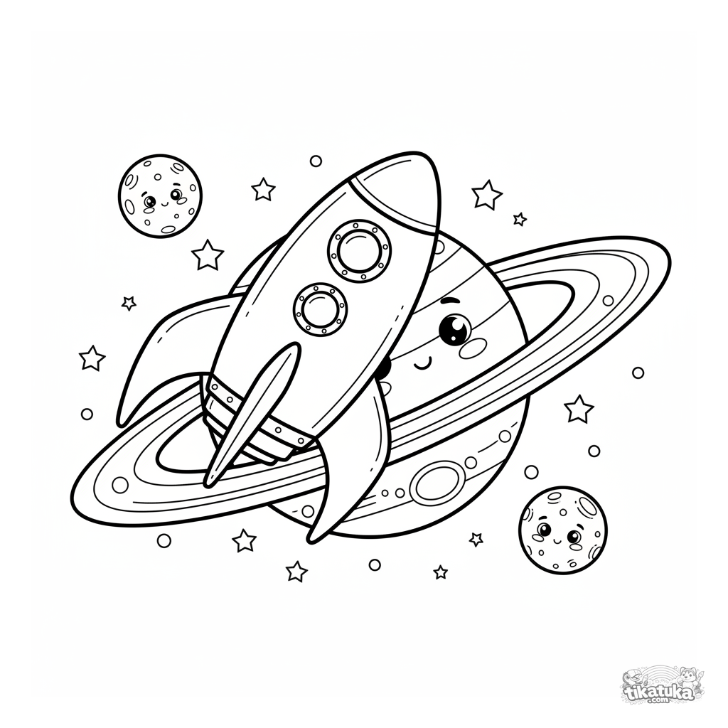 Una página para colorear de Espacio con detalle Medio. Es adecuada para edades 5-8 años, se imprime bien en casa y se abre enseguida en modo en línea.