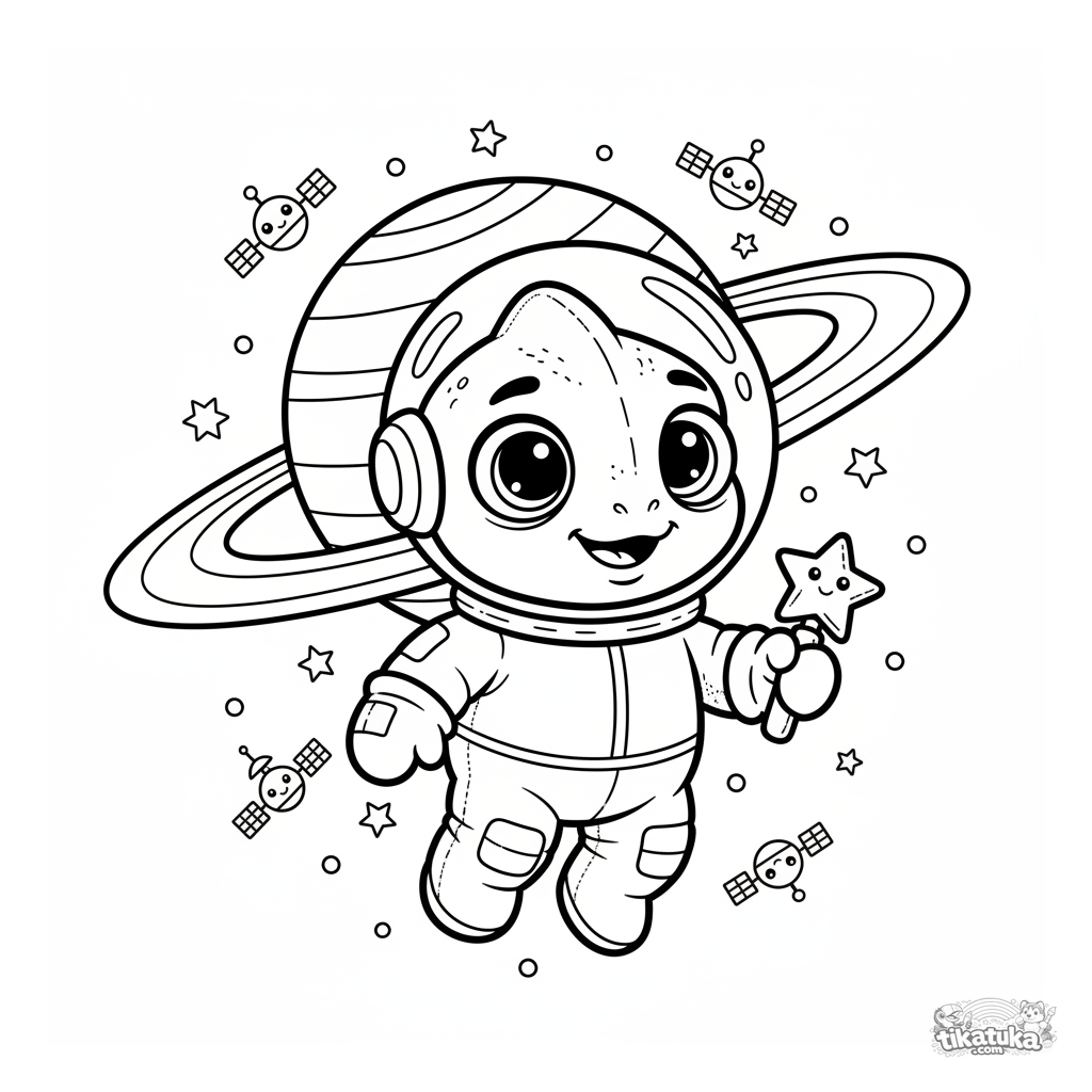 Una página para colorear de Espacio con detalle Medio. Es adecuada para edades 4-6 años, se imprime bien en casa y se abre enseguida en modo en línea.
