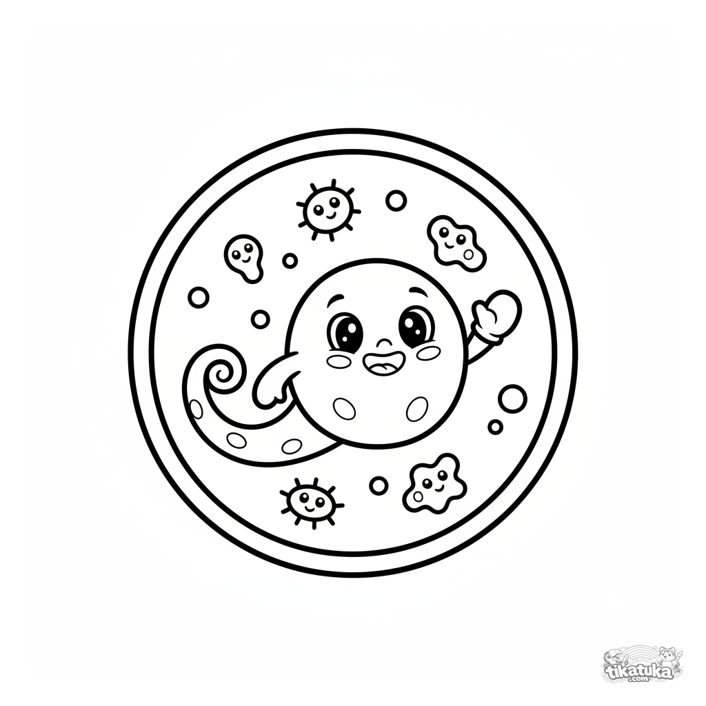 Una página para colorear de Microbios con detalle Fácil. Es adecuada para edades 4-6 años, se imprime bien en casa y se abre enseguida en modo en línea.