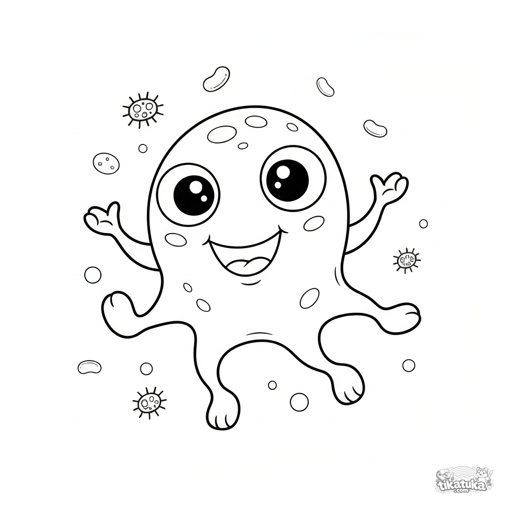 Una página para colorear de Microbios con detalle Fácil. Es adecuada para edades 2-5 años, se imprime bien en casa y se abre enseguida en modo en línea.