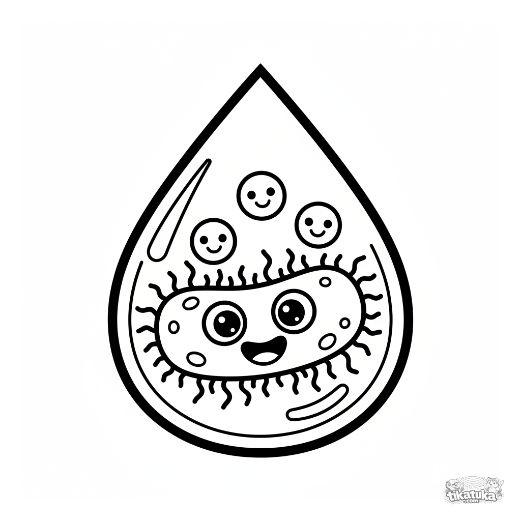 Una página para colorear de Microbios con detalle Fácil. Es adecuada para edades 2-5 años, se imprime bien en casa y se abre enseguida en modo en línea.
