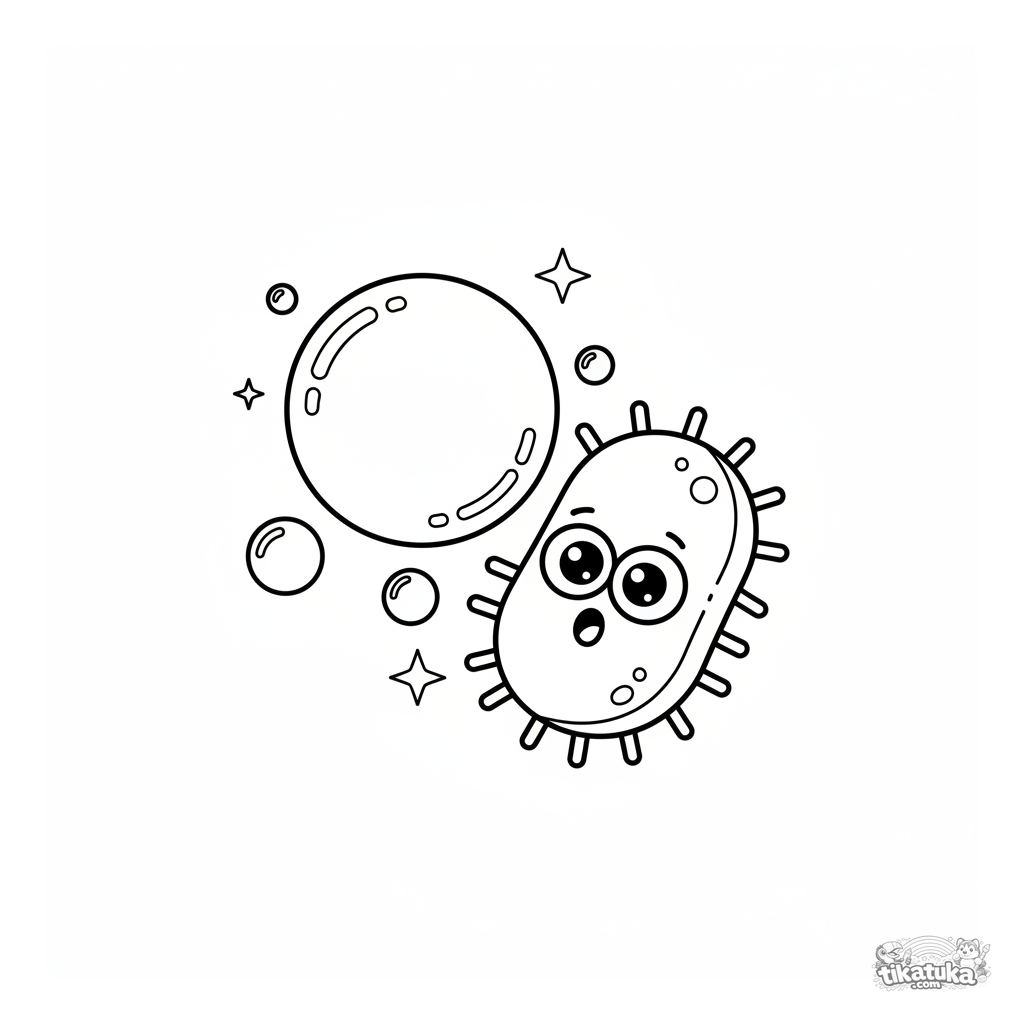 Una página para colorear de Microbios con detalle Fácil. Es adecuada para edades 2-3 años, se imprime bien en casa y se abre enseguida en modo en línea.