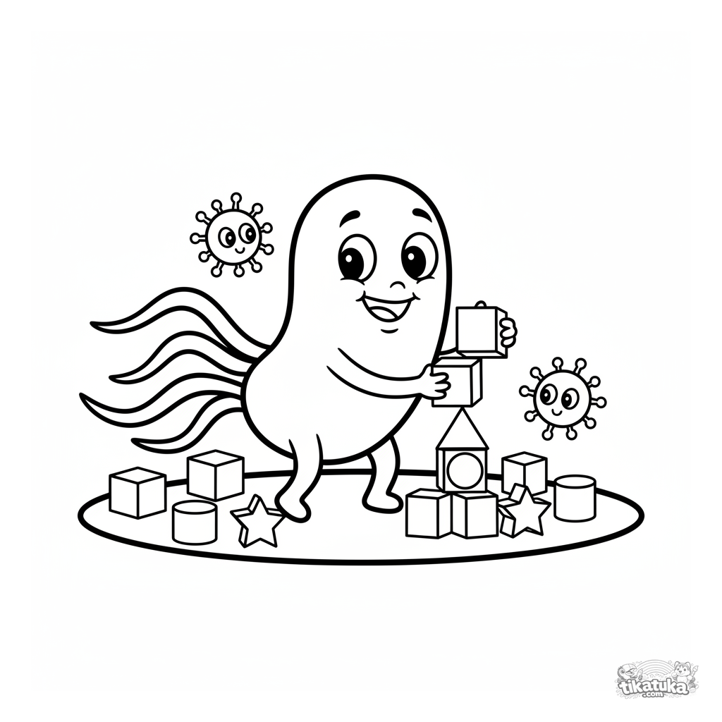 Una página para colorear de Microbios con detalle Fácil. Es adecuada para edades 2-5 años, se imprime bien en casa y se abre enseguida en modo en línea.