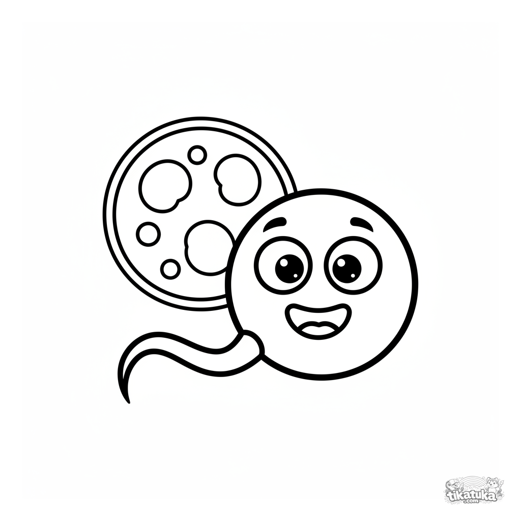Página para colorear para niños pequeños 2-3 años: una bacteria de dibujos animados linda nada usando su flagelo. Formas muy simples.