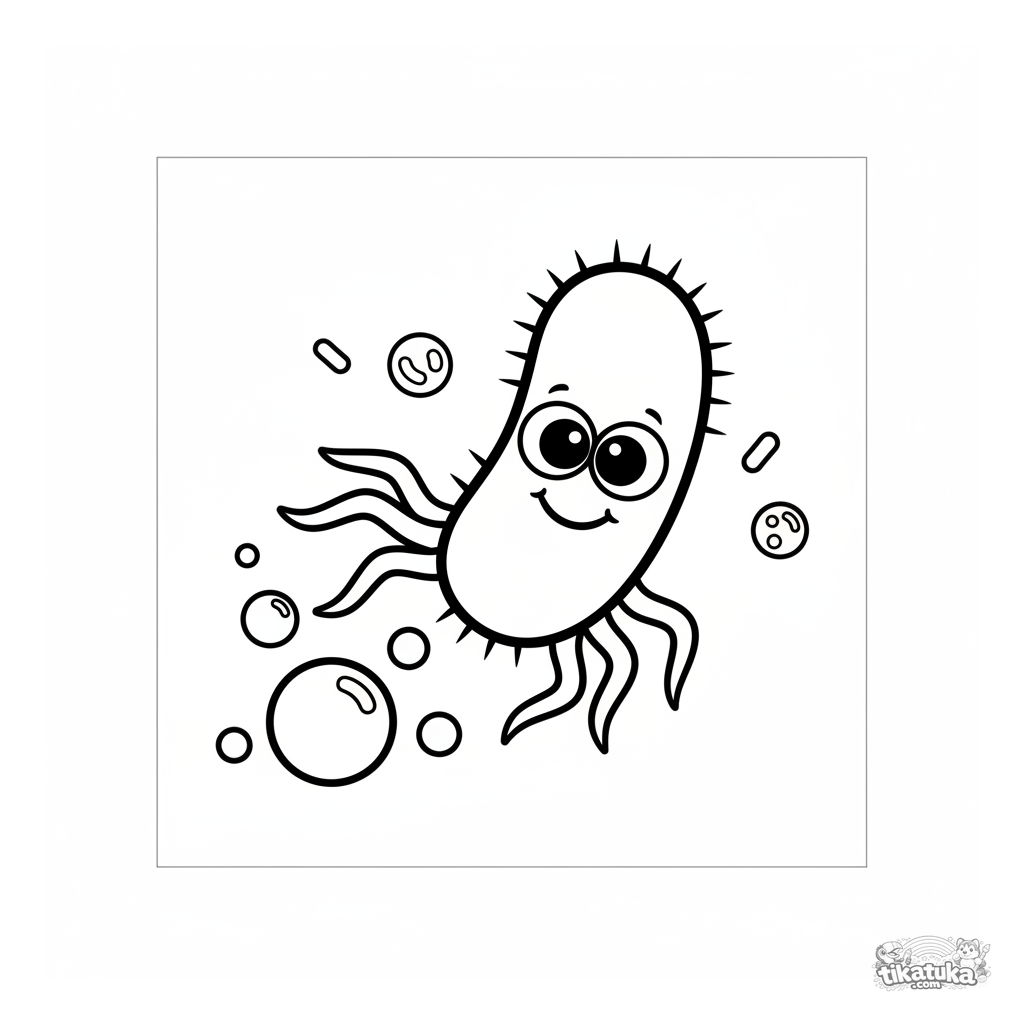 Una página para colorear de Microbios con detalle Fácil. Es adecuada para edades 2-3 años, se imprime bien en casa y se abre enseguida en modo en línea.