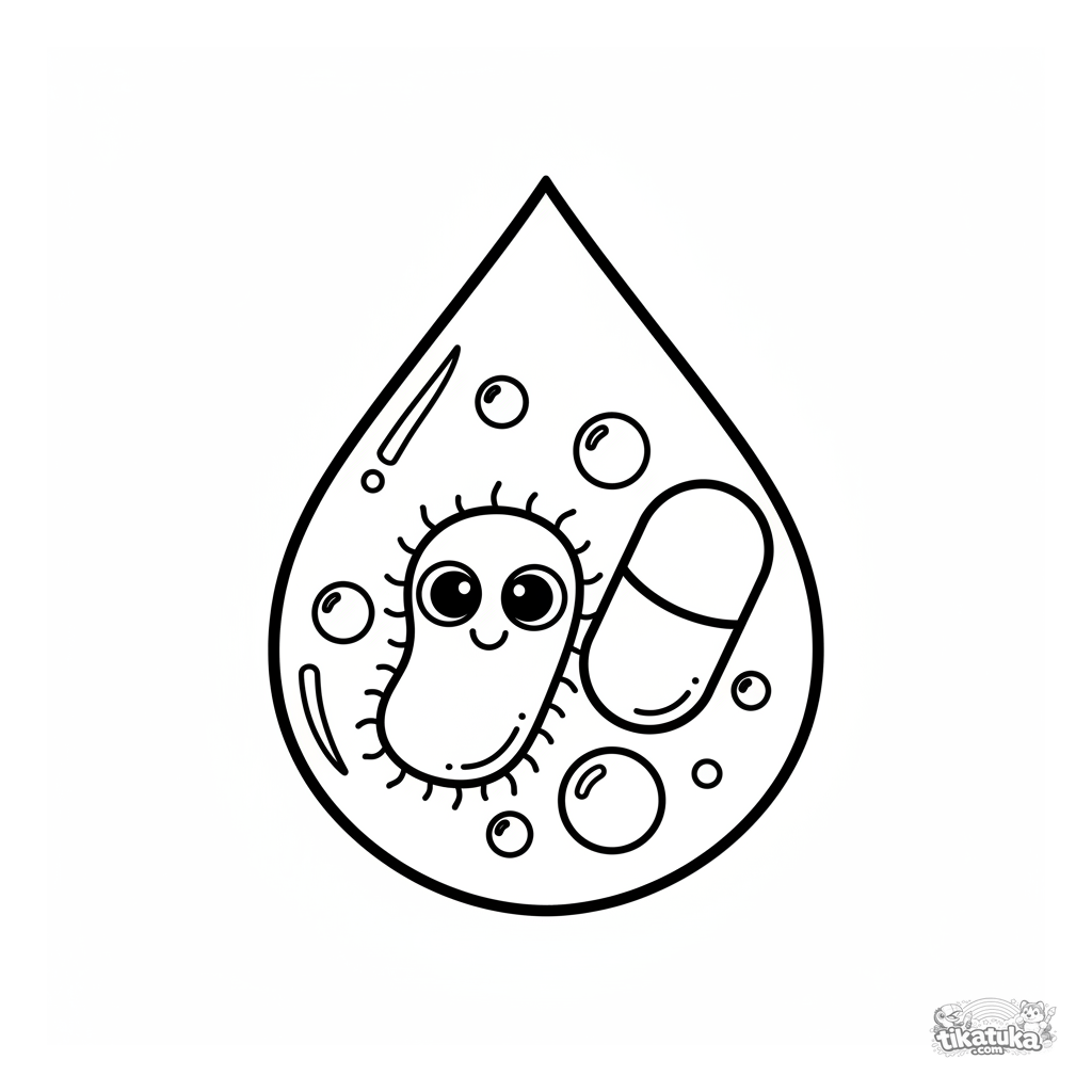 Una página para colorear de Microbios con detalle Fácil. Es adecuada para edades 2-3 años, se imprime bien en casa y se abre enseguida en modo en línea.