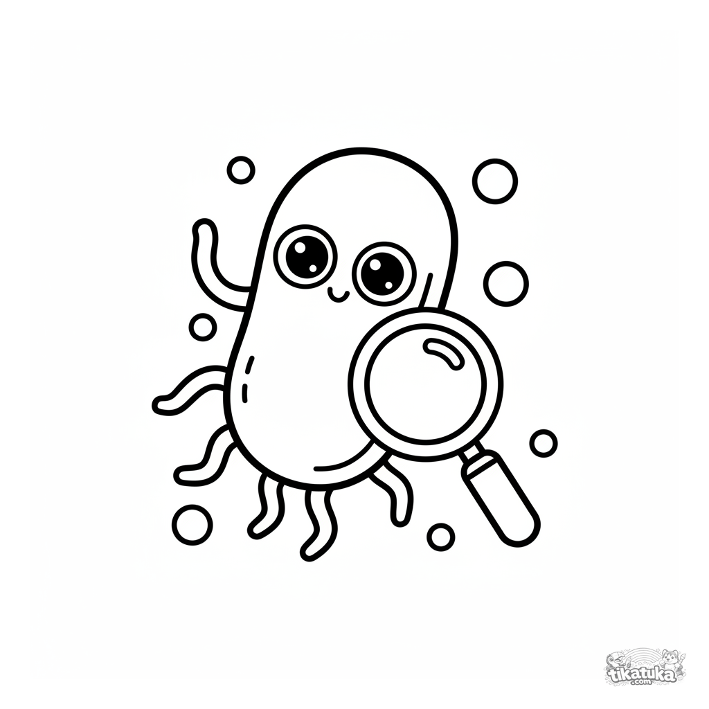 Una página para colorear de Microbios con detalle Fácil. Es adecuada para edades 2-3 años, se imprime bien en casa y se abre enseguida en modo en línea.