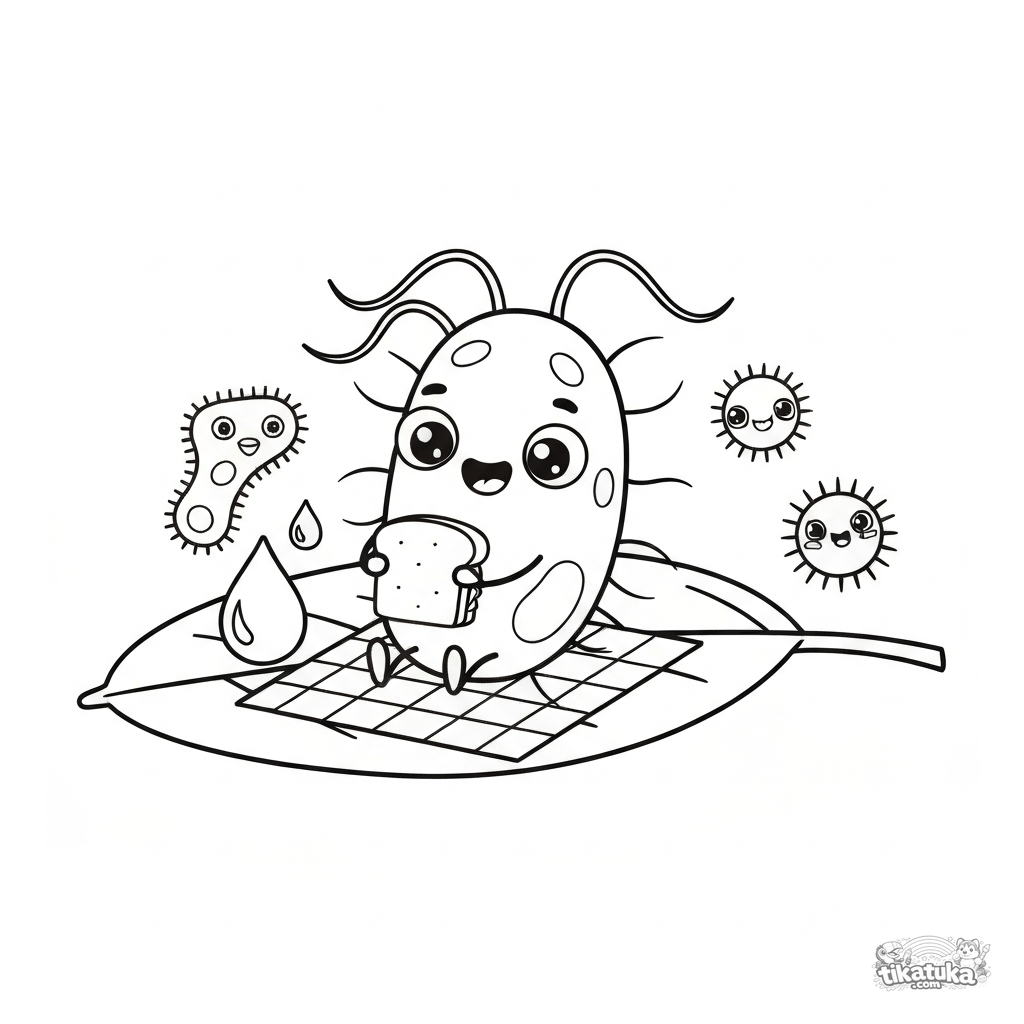 Una página para colorear de Microbios con detalle Fácil. Es adecuada para edades 2-5 años, se imprime bien en casa y se abre enseguida en modo en línea.
