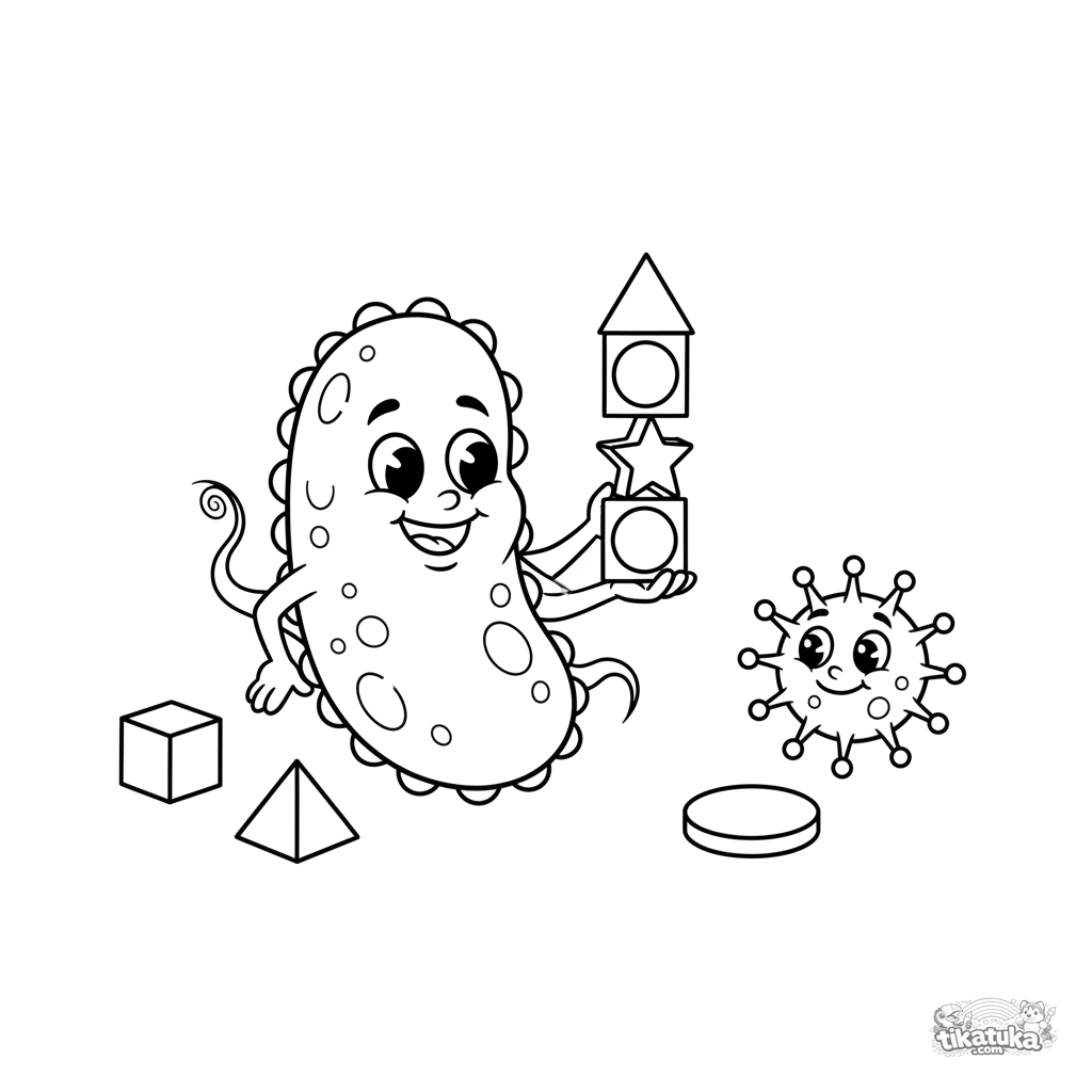 Una página para colorear de Microbios con detalle Fácil. Es adecuada para edades 2-5 años, se imprime bien en casa y se abre enseguida en modo en línea.