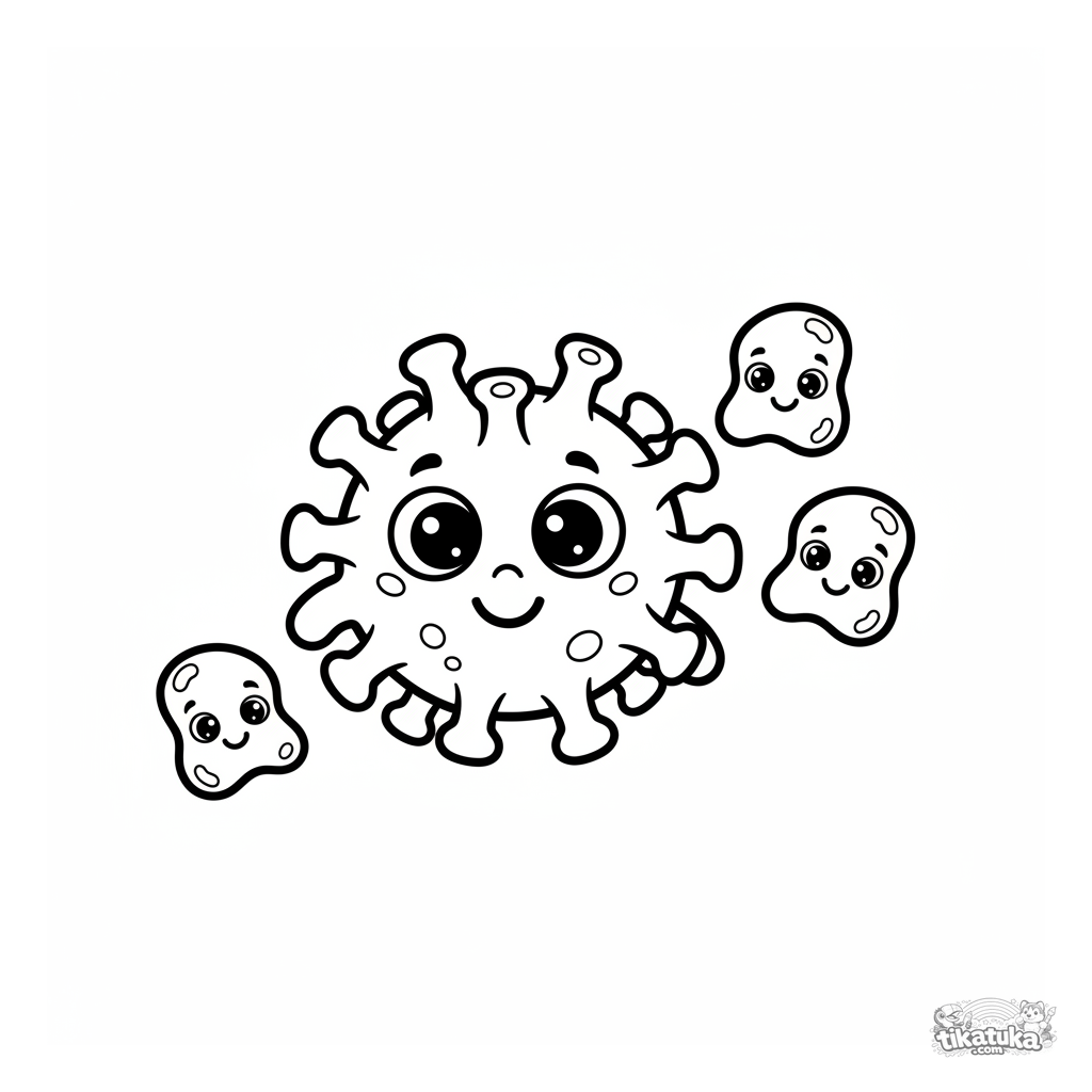 Una página para colorear de Microbios con detalle Fácil. Es adecuada para edades 2-3 años, se imprime bien en casa y se abre enseguida en modo en línea.