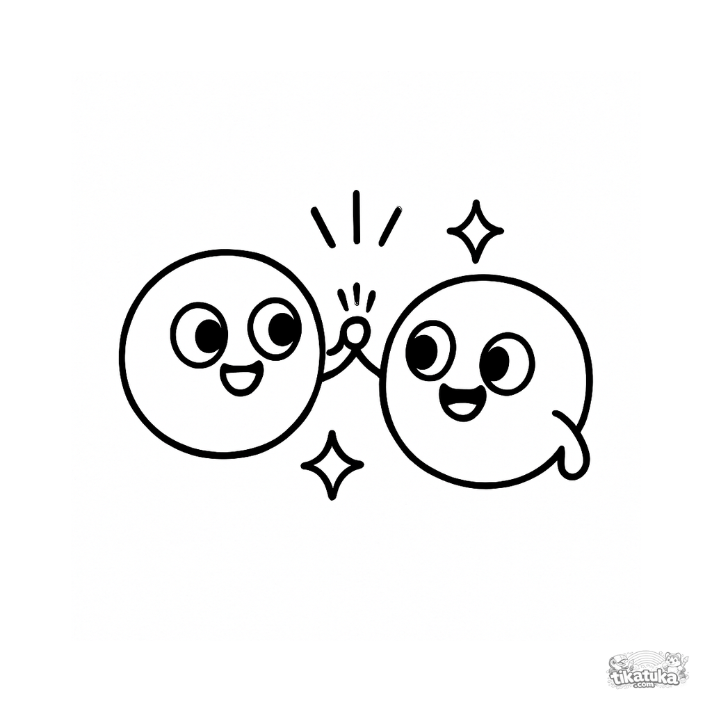 Página para colorear para niños. Dos bacterias diplococos alegres chocando los cinco con expresiones felices y chispas de alegría. Descarga gratis.