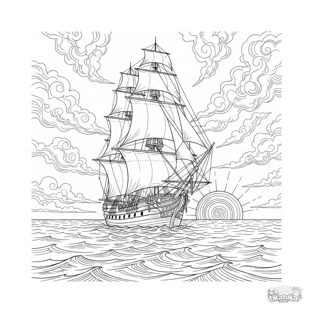 Una página para colorear de Transporte acuático con detalle Difícil. Es adecuada para edades 10+ años, se imprime bien en casa y se abre enseguida en modo en línea.