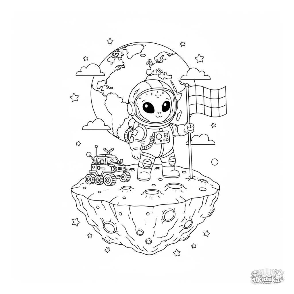 Una página para colorear de Espacio con detalle Difícil. Es adecuada para edades 7+ años, se imprime bien en casa y se abre enseguida en modo en línea.