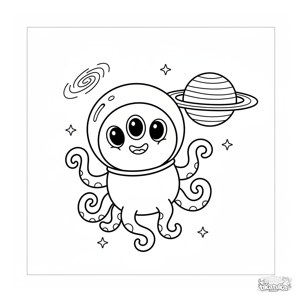 Una página para colorear de Espacio con detalle Medio. Es adecuada para edades 4-6 años, se imprime bien en casa y se abre enseguida en modo en línea.