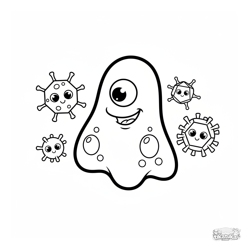 Una página para colorear de Microbios con detalle Fácil. Es adecuada para edades 4-6 años, se imprime bien en casa y se abre enseguida en modo en línea.
