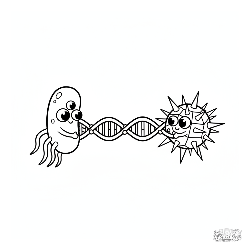 Una página para colorear de Microbios con detalle Fácil. Es adecuada para edades 2-5 años, se imprime bien en casa y se abre enseguida en modo en línea.