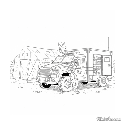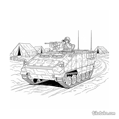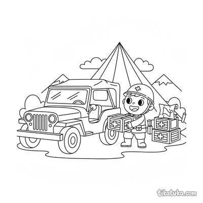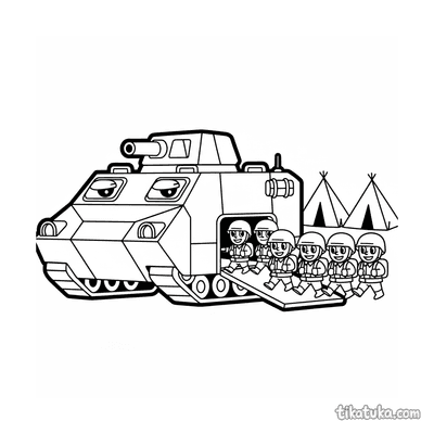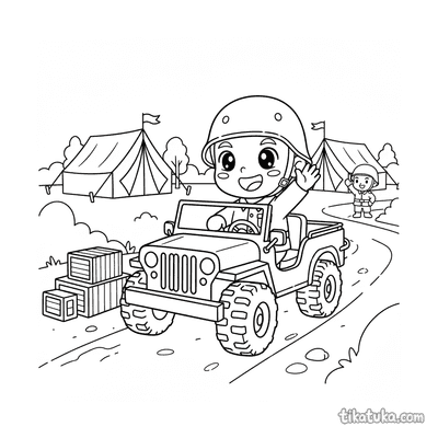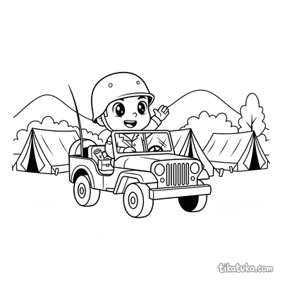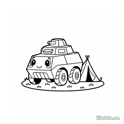 Una página para colorear de Vehículos militares con detalle Fácil. Es adecuada para edades 2-3 años, se imprime bien en casa y se abre enseguida en modo en línea.