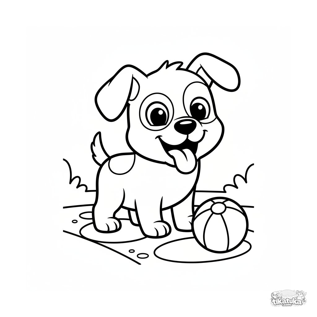 Descarga, imprime o colorea online este cachorro feliz con lengua fuera, orejas caídas y cola meneando en un jardín. ¡Divertido para niños!