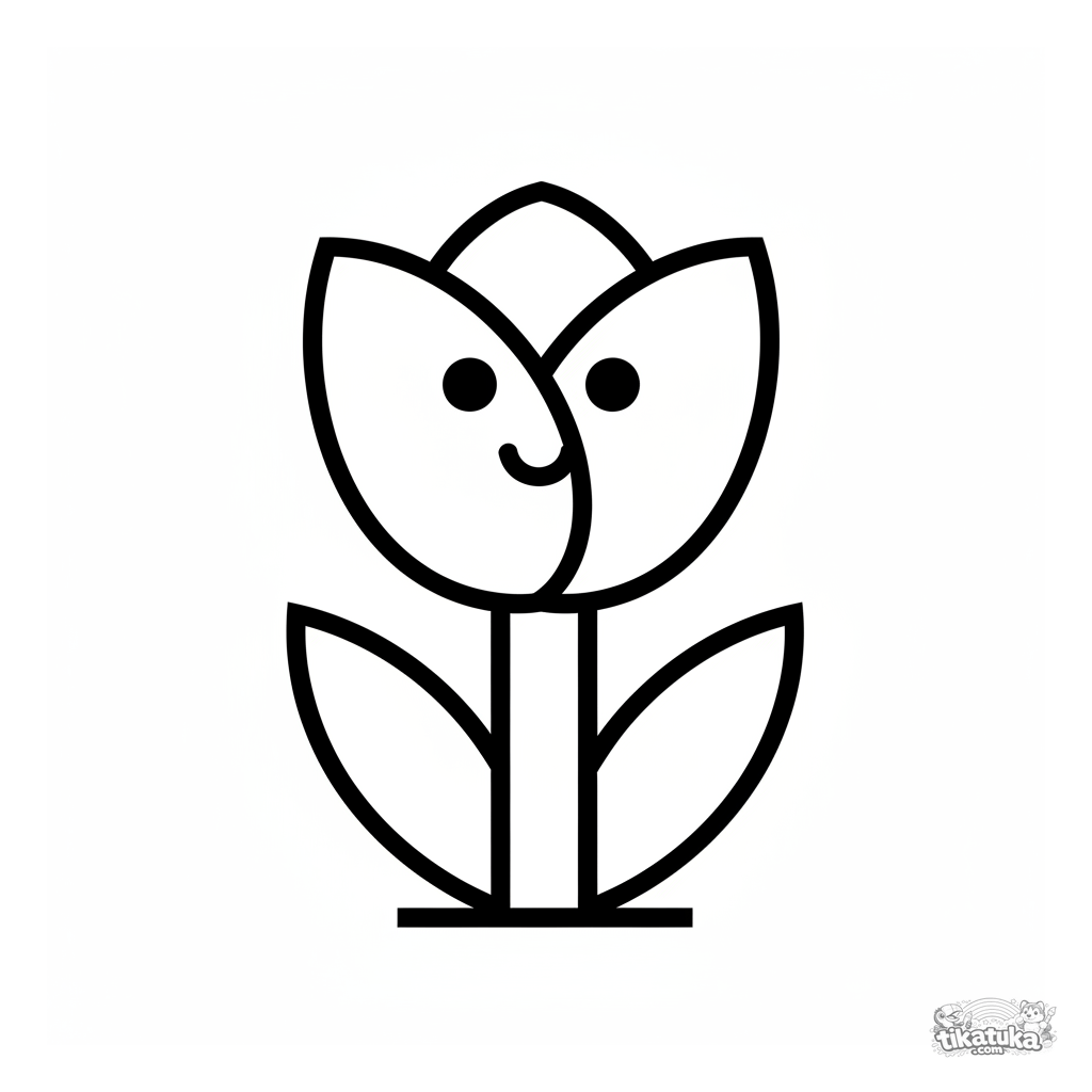 Página muy simple para colorear para bebés 2-3: un tulipán hecho de círculos y rectángulos. Formas grandes cerradas.