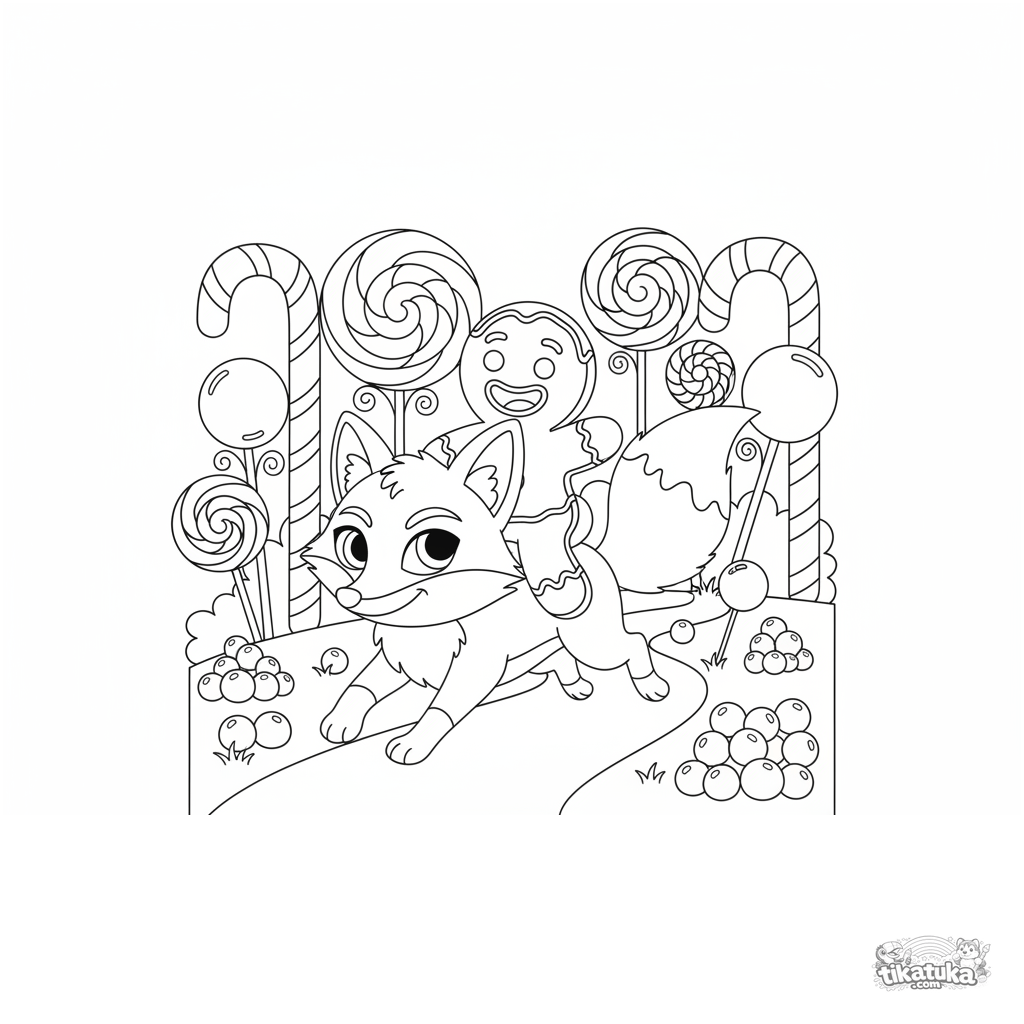 Página para colorear del hombre de jengibre montando un zorro. Para niños de 5 a 8 años.