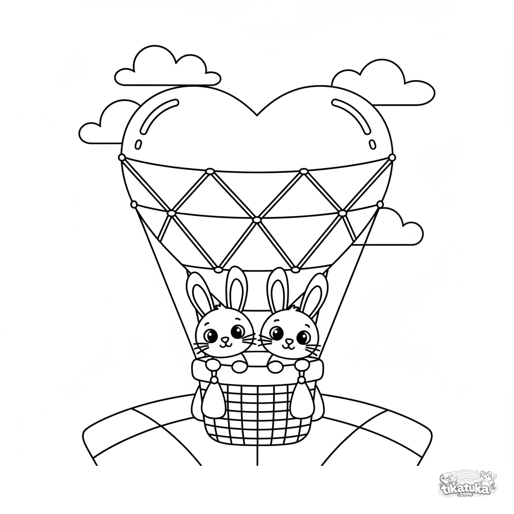 Página para colorear para niños pequeños 2-3: un gran globo aerostático con forma de corazón flota sobre un prado. Formas grandes y simples.