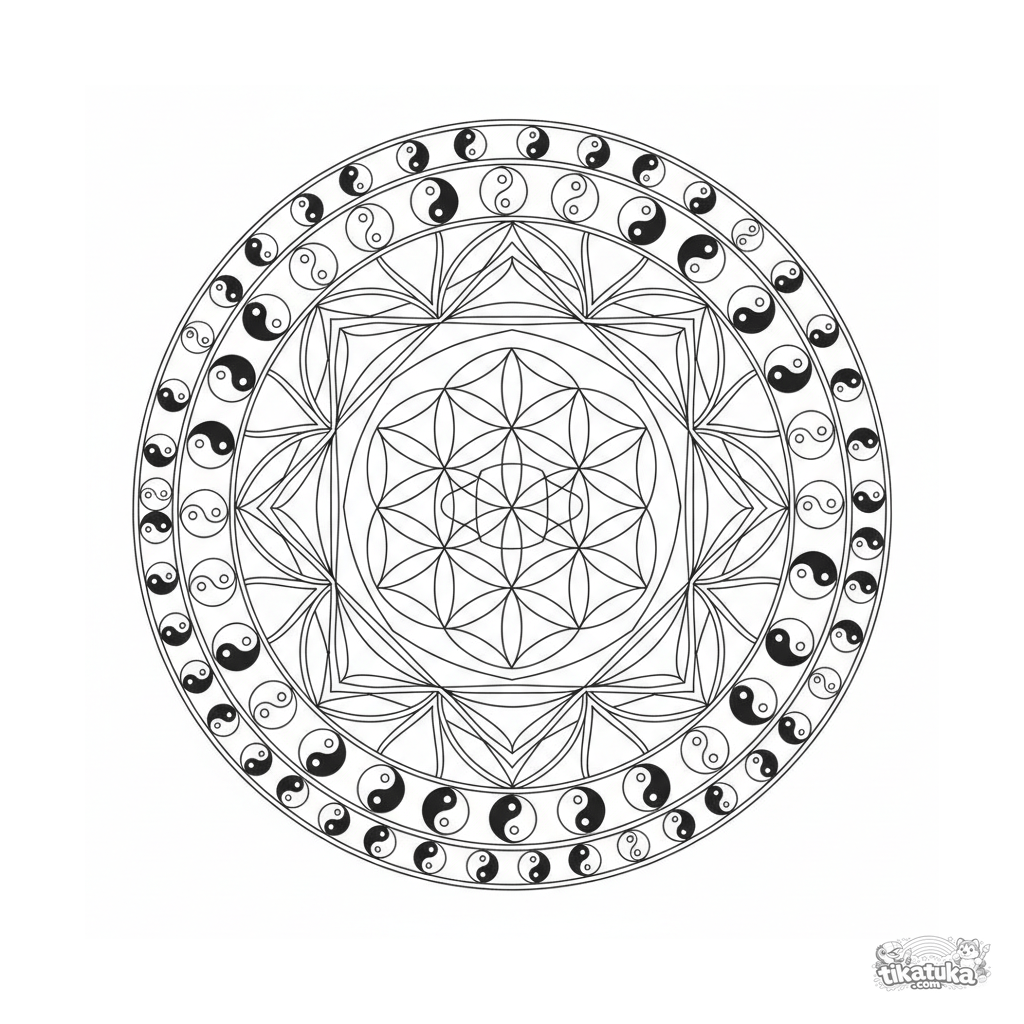 Página para colorear de mandala geométrica sagrada intrincada para 10-12 años. Patrones detallados, flor de la vida y simetría para una actividad artística relajante.