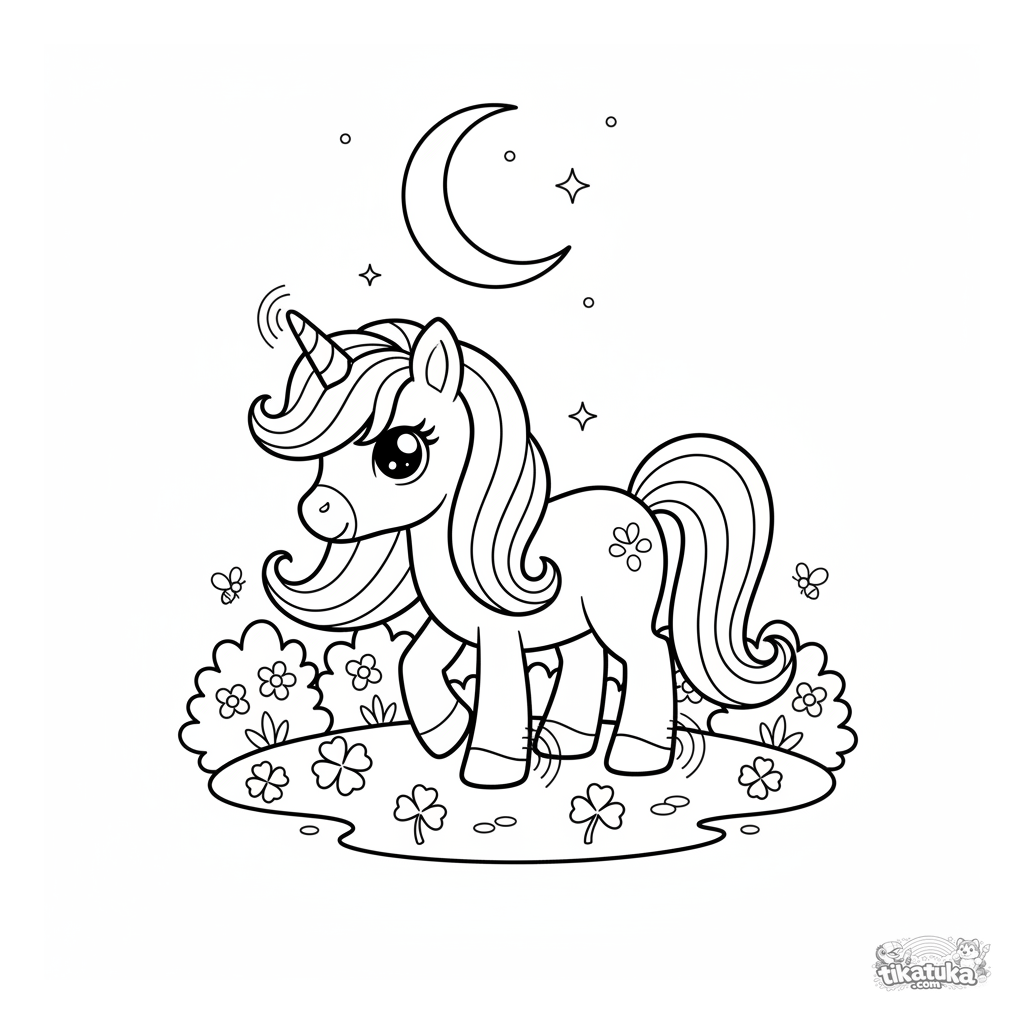 Una página para colorear de Ponis con detalle Medio. Es adecuada para edades 5-7 años, se imprime bien en casa y se abre enseguida en modo en línea.