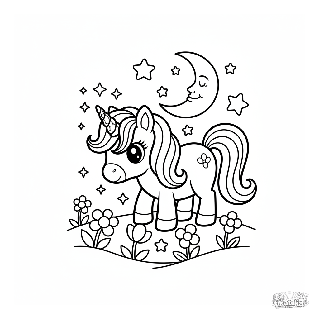 Una página para colorear de Ponis con detalle Fácil. Es adecuada para edades 2-5 años, se imprime bien en casa y se abre enseguida en modo en línea.