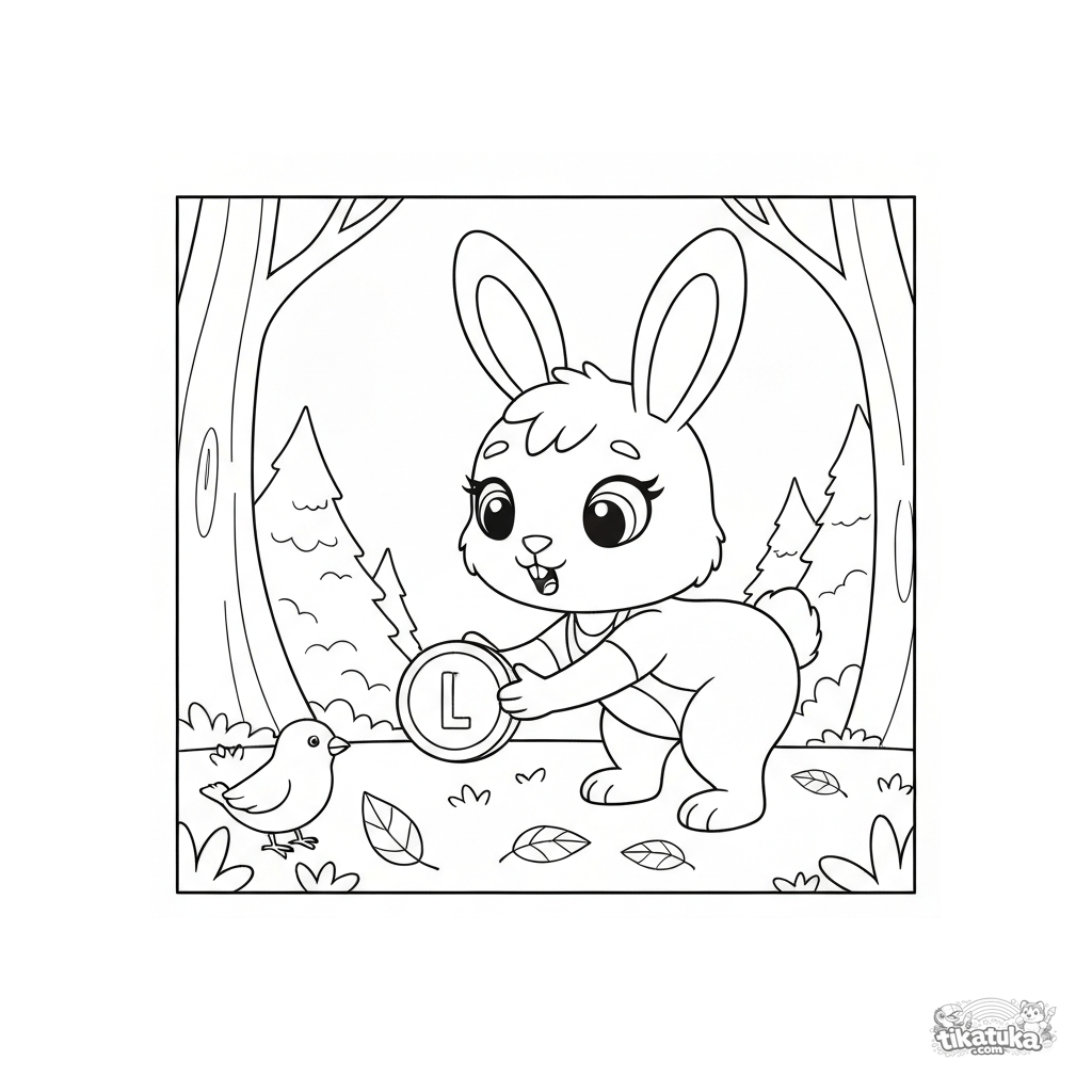 Descubre a la conejita Martha sorprendida al encontrar una moneda en el bosque otoñal. Descarga, imprime o colorea online esta divertida imagen.