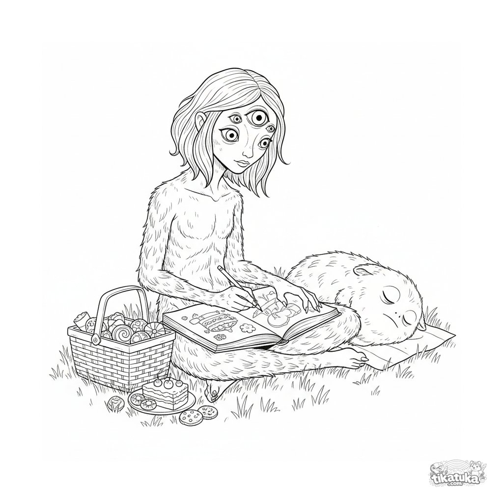 Una página para colorear de Monstruos con detalle Difícil. Es adecuada para edades 10+ años, se imprime bien en casa y se abre enseguida en modo en línea.
