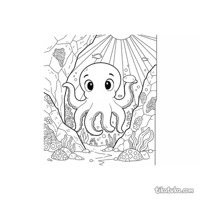 Una página para colorear de Animales submarinos con detalle Fácil. Es adecuada para edades 2-3 años, se imprime bien en casa y se abre enseguida en modo en línea.