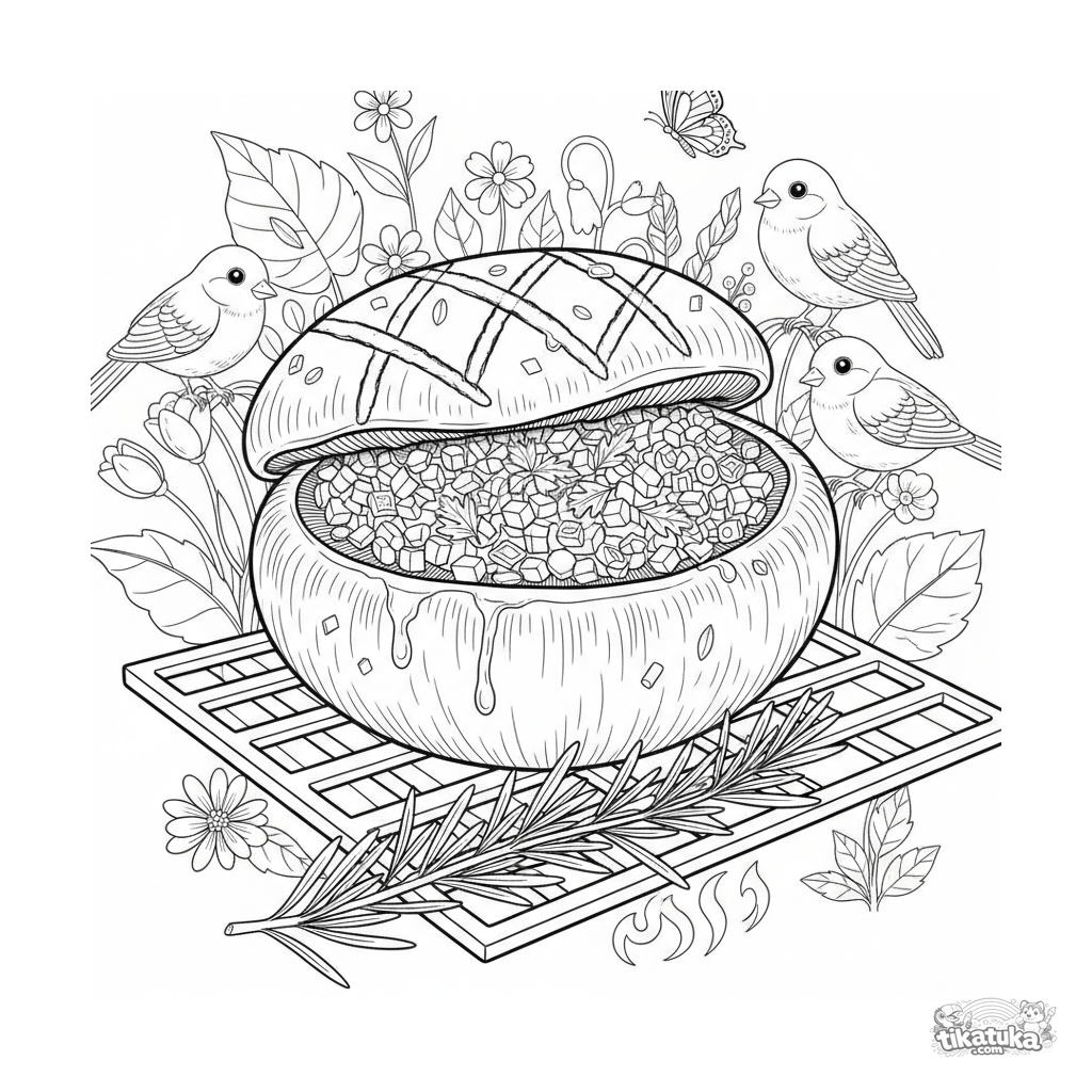 Una página para colorear de Comida con detalle Difícil. Es adecuada para edades 10+ años, se imprime bien en casa y se abre enseguida en modo en línea.