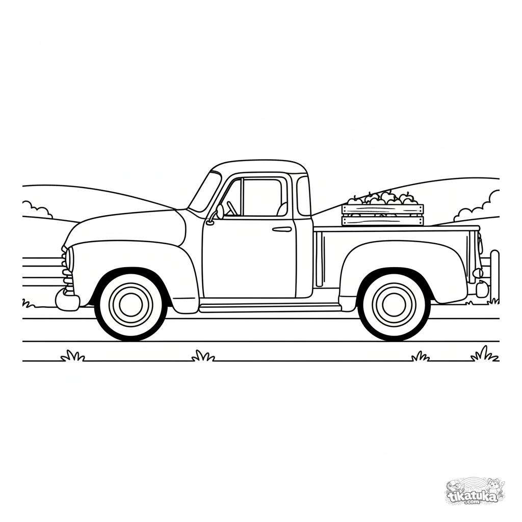 Página detallada para colorear de una camioneta vintage. Para niños de 4-6 años a los que les gustan los coches.
