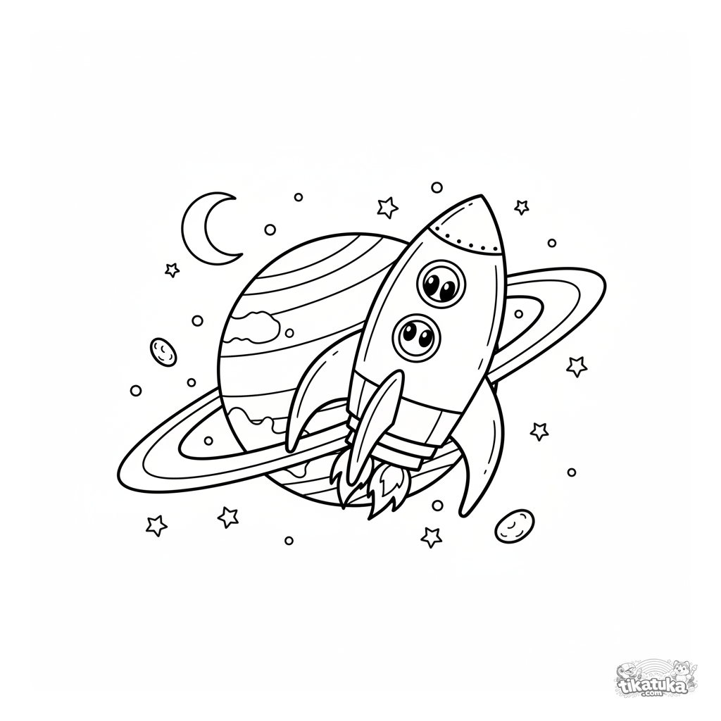 Una página para colorear de Espacio con detalle Medio. Es adecuada para edades 5-8 años, se imprime bien en casa y se abre enseguida en modo en línea.