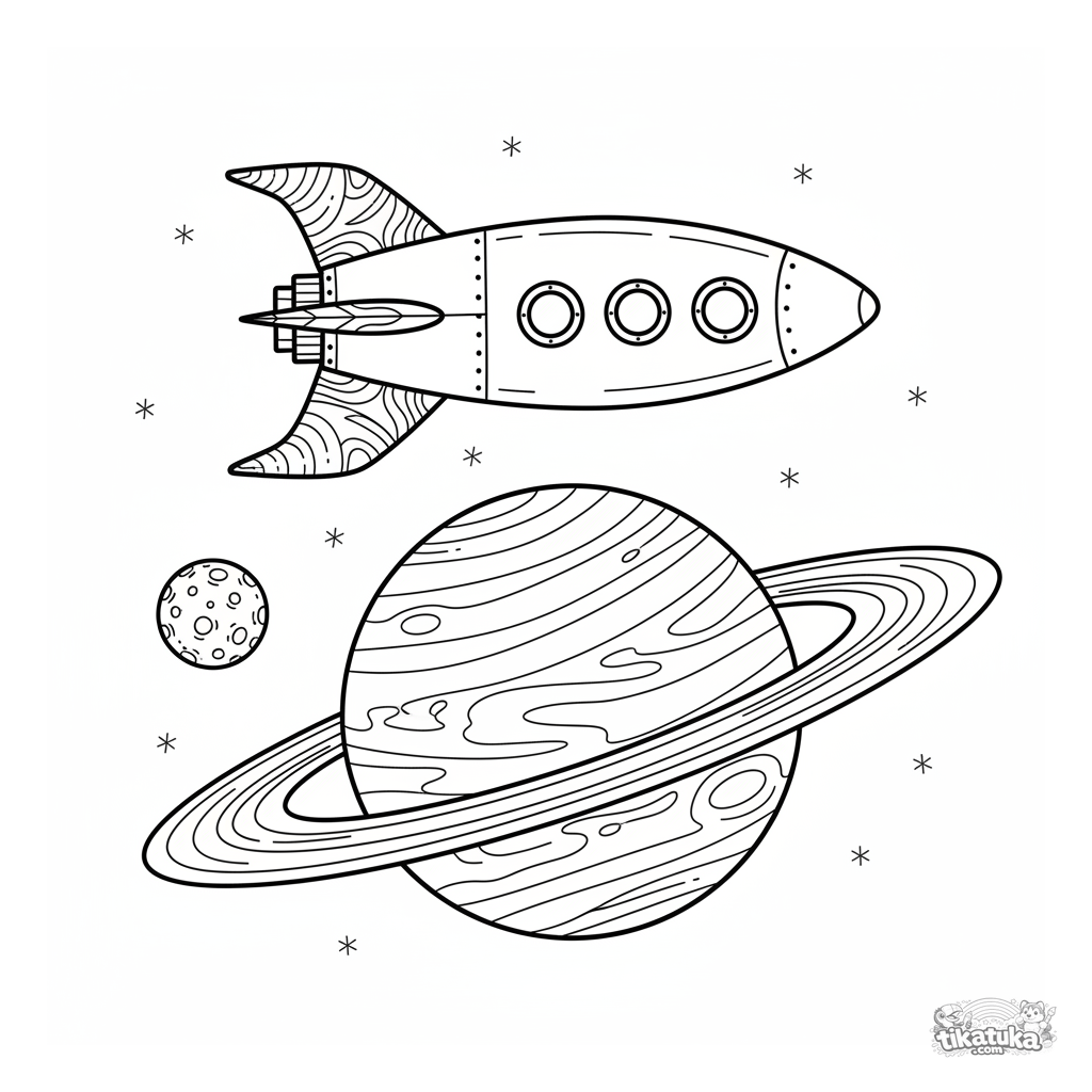 Una página para colorear de Espacio con detalle Difícil. Es adecuada para edades 6-9 años, se imprime bien en casa y se abre enseguida en modo en línea.
