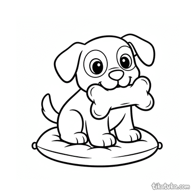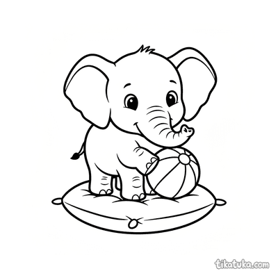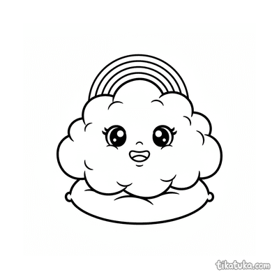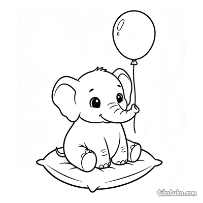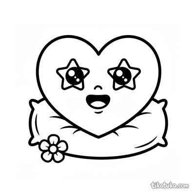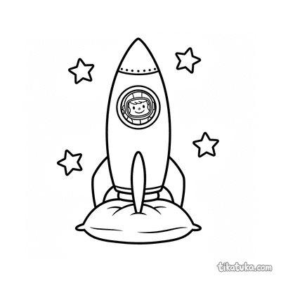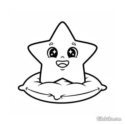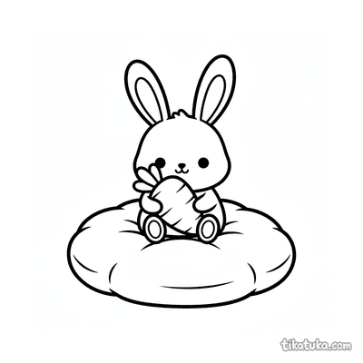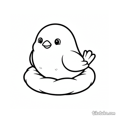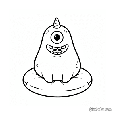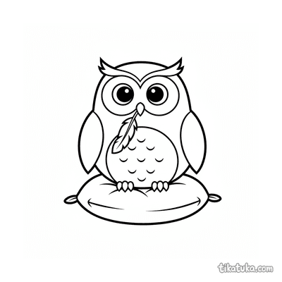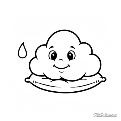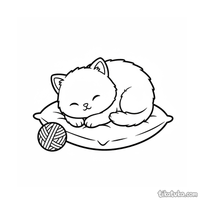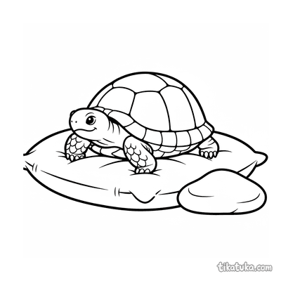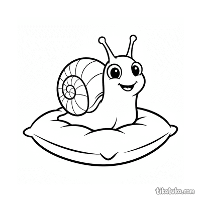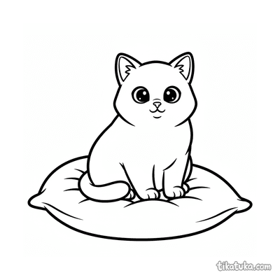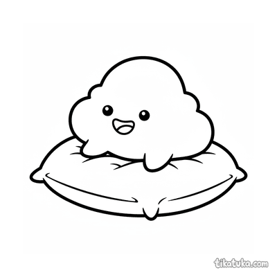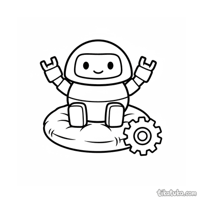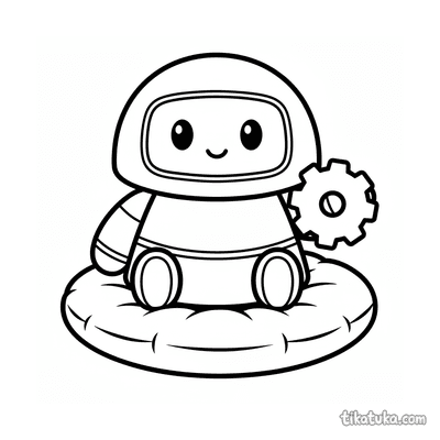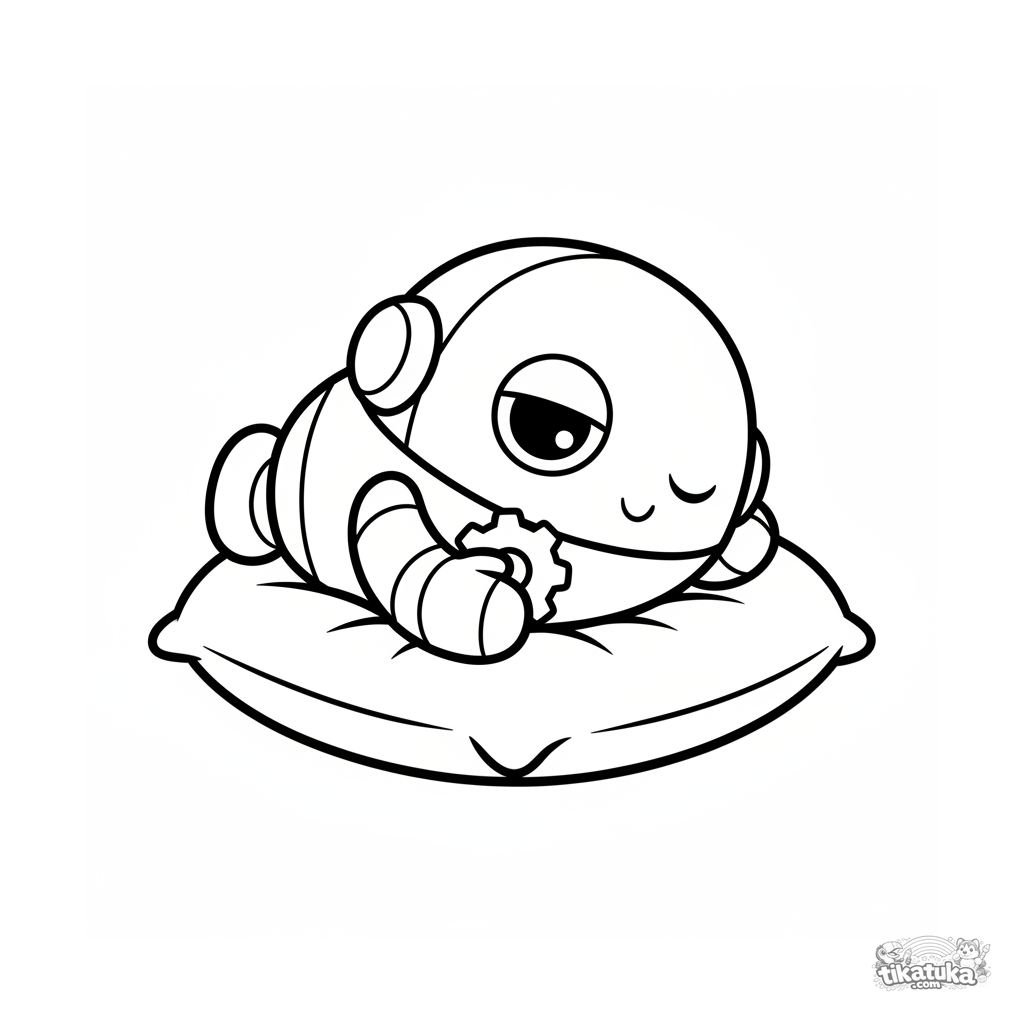 Página simple para colorear para niños pequeños: un robot redondo y amigable descansa en un cojín. Formas geométricas grandes, pocas líneas.