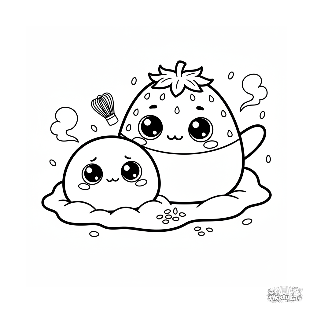 Una página para colorear de Comida kawaii y boba con detalle Medio. Es adecuada para edades 4-6 años, se imprime bien en casa y se abre enseguida en modo en línea.