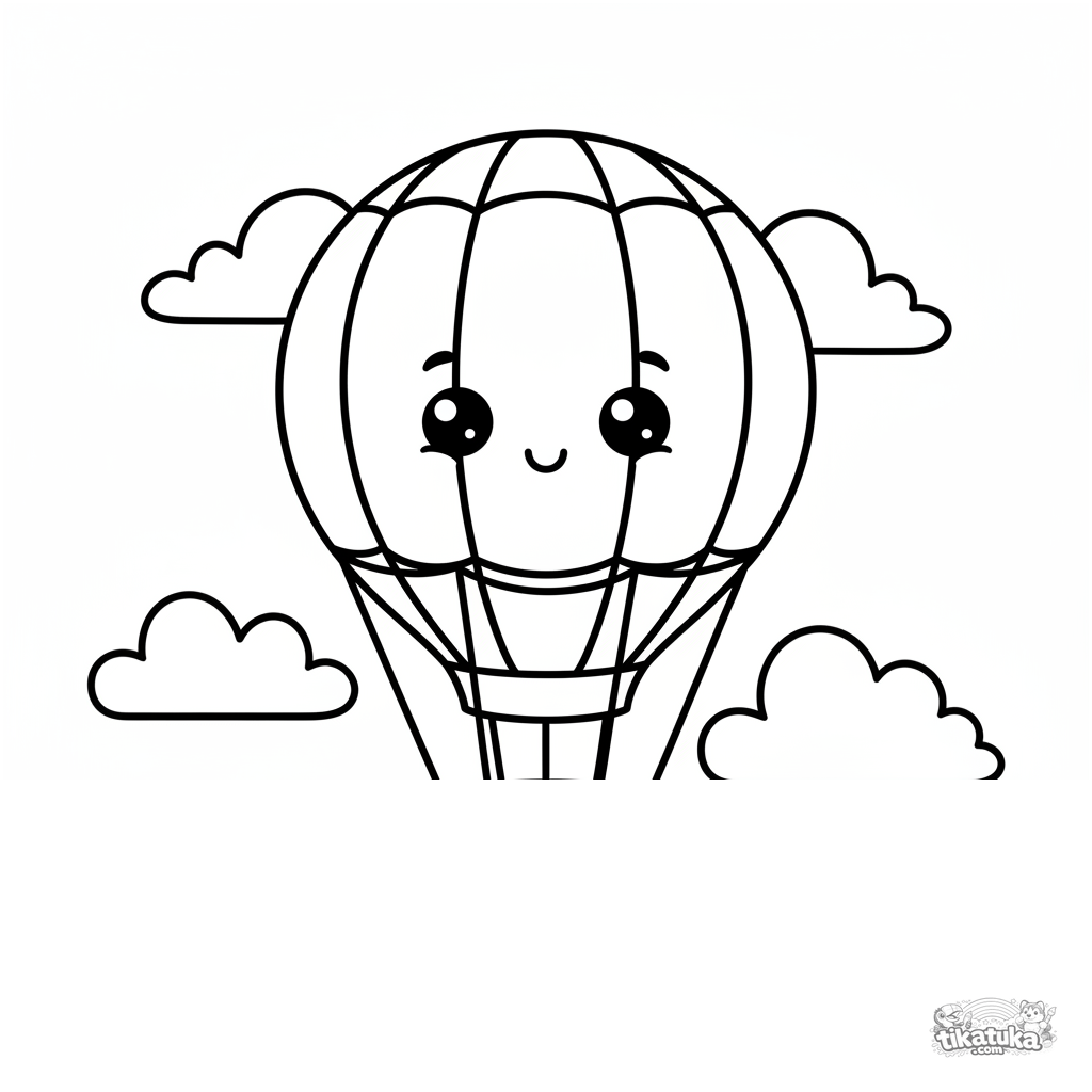 Página para colorear muy simple de un globo aerostático en el cielo para niños pequeños (2-3 años). Formas grandes y claras, amplios márgenes para colorear.